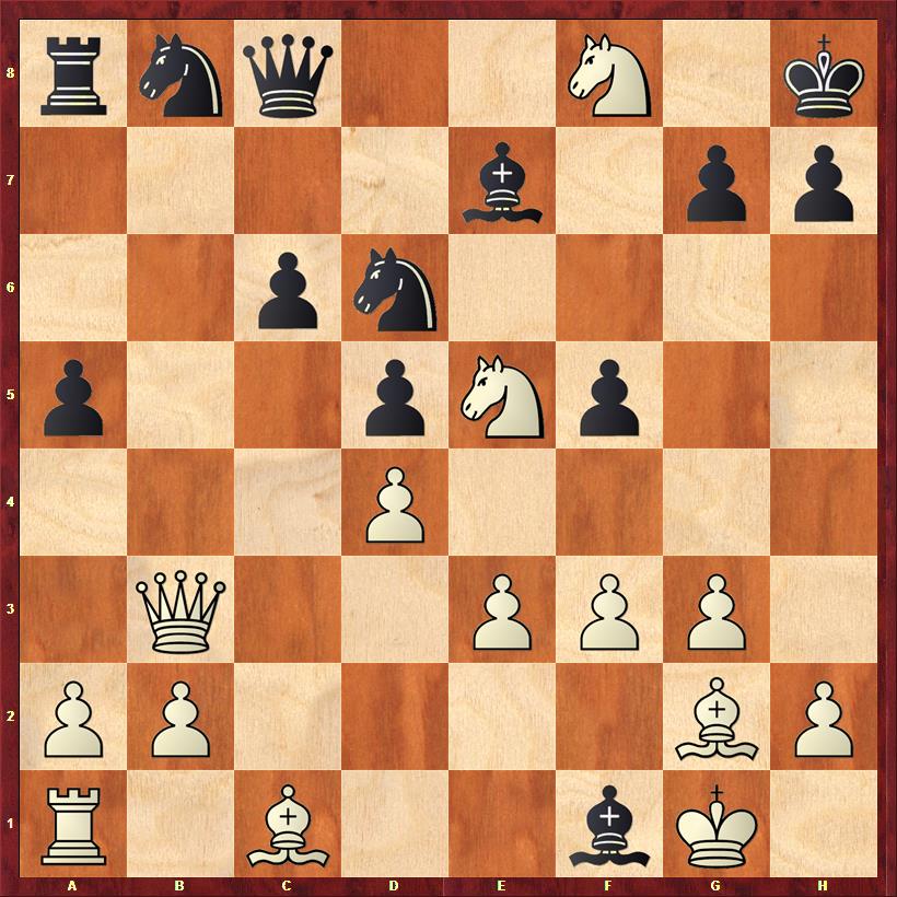 We join the action after 13 moves of a game that began as a Semi-Slav defence, but has reached a position that very strongly resembles a Stonewall Dutch.